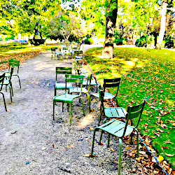 Il y a dans le square des chaises vides mais encore regroupées côte à côte, comme si leurs occupants étaient toujours assis, mais avaient enfilé leur cape d'invisibilité.
